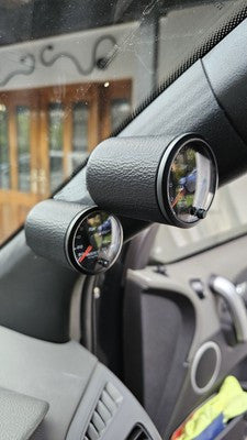 This A-pillar gauge pod is designed for Ford Ranger PJ/PK (2006–2011). It fits securely over the factory pillar trim and supports standard 52mm or 60mm round gauges.